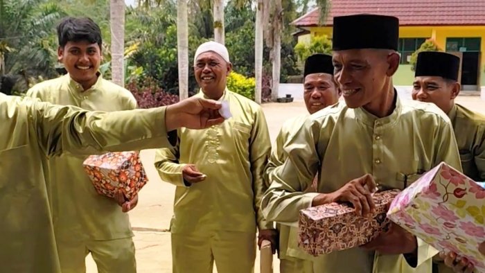 Rimbo Bujang(MIN 4 TEBO) – Para guru MIN 4 Tebo menggelar acara tukar kado sebagai bagian dari peringatan Hari Guru Nasional 2025. Mekanisme tukar kado dilakukan secara rahasia dengan sistem undian nomor. Semua kado yang dibawa ditumpuk di meja dan diberi nomor identifikasi.