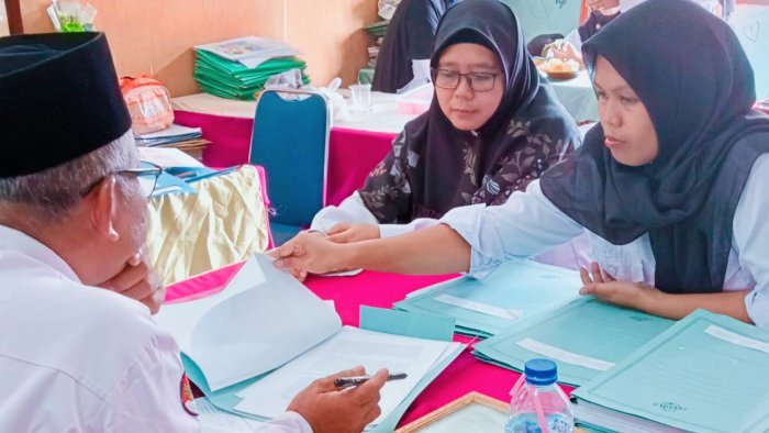Rimbo Bujang(MIN 4 TEBO) – Proses Penilaian Kinerja Kepala Madrasah (PKKM) di MIN 4 Tebo dilanjutkan pukul 14.00 dengan penilaian Komponen B, C, dan D oleh Penilai 2 H. Kholis Mawardi, S.Pd secara bergiliran, sementara komponen E dinilai oleh Penilai 1 Drs. Ahmad Makin, M.Pd.I. Kegiatan berlangsung intensif hingga pukul 15.00 dengan fokus pada verifikasi bukti dukung dan diskusi substantif.