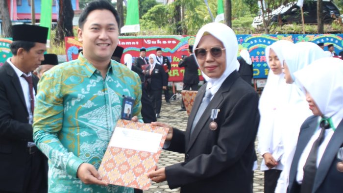 Rimbo Bujang(MIN 4 TEBO) – Wildanun Mukholladuun, siswa kelas 5B MIN 4 Tebo, menerima apresiasi atas prestasinya sebagai Juara 3 bidang Ilmu Pengetahuan Alam dan Sosial (IPAS) dalam Olimpiade Madrasah Indonesia (OMI) Tingkat Kabupaten Tebo tahun 2025. Penghargaan berupa piagam dan uang pembinaan diserahkan secara simbolis dalam Upacara Hari Amal Bakti ke-80 Kementerian Agama RI di lapangan upacara Kantor Kemenag Tebo. Penyerahan diwakili oleh salah seorang guru MIN 4 Tebo yang hadir.