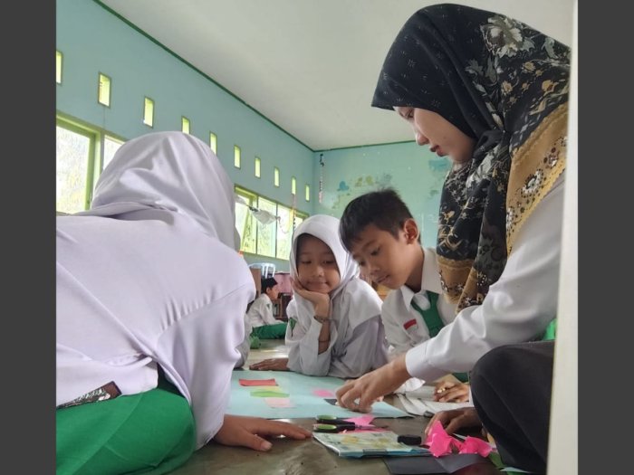 Kegiatan ini dirancang untuk memberikan pemahaman konkret tentang bentuk-bentuk bangun datar, seperti persegi, persegi panjang, segitiga, lingkaran, jajar genjang, hingga trapesium. Sebelum praktik, guru mereview singkat tentang ciri-ciri setiap bangun. Kemudian, setiap kelompok diberikan sejumlah kertas origami dengan berbagai warna, karton sebagai alas, lem, gunting, dan penggaris.