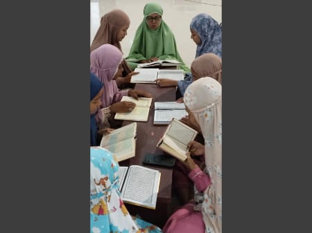 Rimbo Bujang (MIN 4 Tebo) - Peran guru MIN 4 Tebo tidak hanya terbatas di lingkungan madrasah, tetapi juga aktif dalam kegiatan keagamaan di masyarakat. Yahminarti, salah satu guru, memanfaatkan malam-malam Ramadhan dengan memimpin tadarus Al-Qur'an bersama anak-anak dan ibu-ibu usai shalat tarawih di Masjid Baiturrahman, Jalan 20, Desa Rimbo Mulyo.