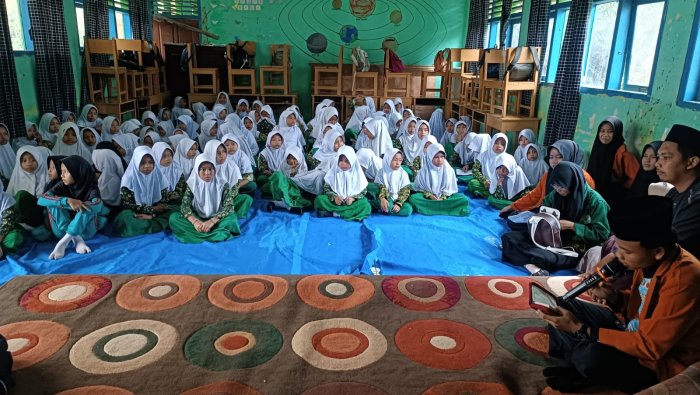 Sejak pukul 08.00, hujan deras mengguyur sekitar madrasah namun tidak menyurutkan semangat siswa MIN 4 Tebo untuk mengikuti pesantren kilat. Kegiatan dipindahkan ke dalam ruangan dengan memanfaatkan dua kelas yang disatukan. Panggung utama ditempatkan di tengah, sementara siswa laki-laki duduk di area Kelas 5A dan siswa perempuan di area Kelas 6B, menjaga ketertiban dan kenyamanan selama acara.