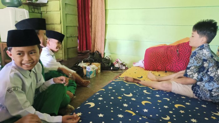 Danum sendiri mengalami kecelakaan sepeda motor sepulang mengaji pada Rabu lalu. Beruntung kondisinya tidak terlalu parah dan hanya menjalani rawat jalan di rumah. Namun karena luka di kakinya, ia belum bisa berjalan sehingga terpaksa absen sekolah selama beberapa hari. Kehadiran teman-teman sekelas tentu menjadi penyemangat tersendiri bagi Danum.