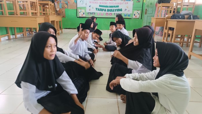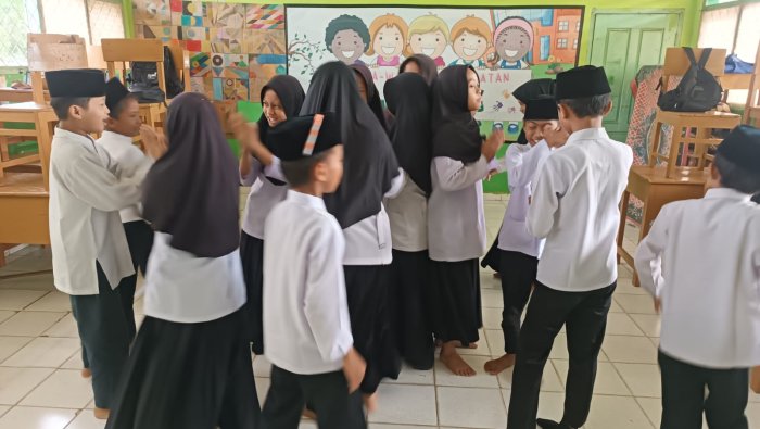Rimbo Bujang (MIN 4 Tebo) - Suasana haru mewarnai ruang Kelas 5B pada Jumat (13/3) pagi. Wali kelas Puji Basuki secara mendadak mengatur siswa duduk di lantai secara berhadapan-hadapan. Satu per satu mereka diminta mengungkapkan permohonan maaf dan harapan agar masing-masing bisa berubah lebih baik. Meski diawali dengan rasa canggung dan sedikit gengsi, akhirnya beberapa pasang siswa tampak sentimentil dan berpelukan, menyadari bahwa selama ini mungkin pernah bertikai.