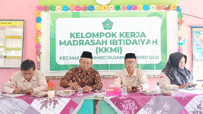 Rimbo Bujang (MIN 4 Tebo) - Kepala MIN 4 Tebo sekaligus Ketua Kelompok Kerja Madrasah Ibtidaiyah (KKMI) Wilayah Barat, Suhaimi, memimpin pertemuan rutin yang digelar di MIS Bustanul Ulum, Kecamatan Rimbo Ulu, mulai pukul 09.00 WIB. Acara dihadiri oleh seluruh kepala madrasah negeri dan swasta se-Wilayah Barat yang meliputi Kecamatan Rimbo Bujang, Rimbo Ulu, dan VII Koto. Hadir pula Pengawas Pembina Madrasah Ibtidaiyah, Mauzi. Pertemuan menghasilkan sejumlah keputusan penting terkait jadwal ujian, pelatihan kurikulum, hingga tenggat penyelesaian Kurikulum Operasional Madrasah (KOM).